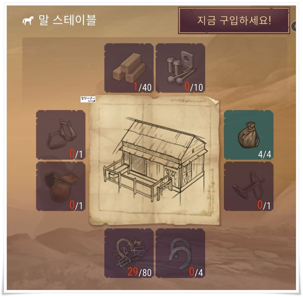 이곳을 클릭해 보면 마구간 건설을 위한 필요한 부품이 나오는데요. 웨스트랜드 마구간 건설을 위해서 필요한 자재를 잠시 살펴보면 다음과 같습니다.